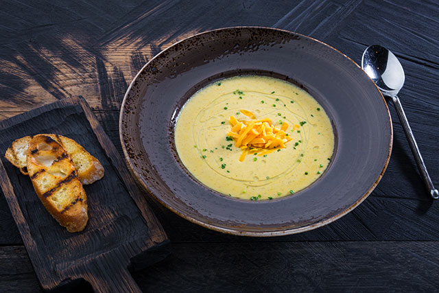 Тостада с севиче из креветок на хрустящей лепешке с домашним гуакамоле или фалафель из киноа с грюйером и огуречной раитой, в разы более привлекательный, чем его нутовый «дедушка», бочонок початка кукурузы элоте в обсыпке из острого пармезана с айоли серано — каждая из этих небольших закусок (все по 190 руб.) может стать уверенным прологом к трапезе, в которой салаты, супы, сэндвичи и десерты соперничают за роли протагонистов.