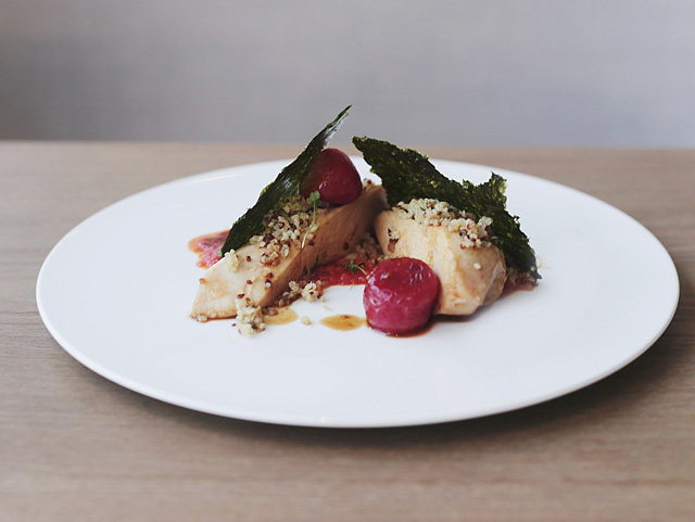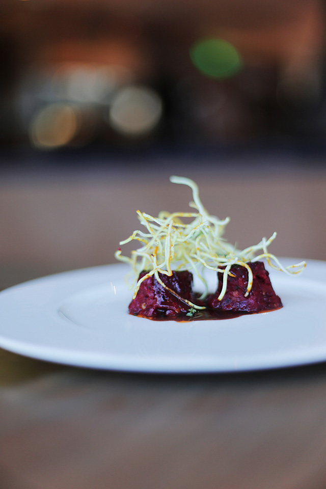 Если с разными отрубами говядины (1 730—2 890 руб.) и пекинской уткой (2 300 руб.) здесь особо не мудрствовали, то с уже знакомым нам оленем произошло несколько волшебных курьезов. Приготовленную на гриле корейку уложили на алтайскую полбу, сдобренную пармезаном и лавандой, добавили черносливовое пюре с кайенским перцем, полили шоколадно-кленовым соусом, украсили шоколадной бумагой и посыпали ягодами тутовника и годжи (не надейтесь похудеть прямо здесь). Всего за 890 рублей все вкусы мира на ваших рецепторах и 50 оттенков заката за окнами.