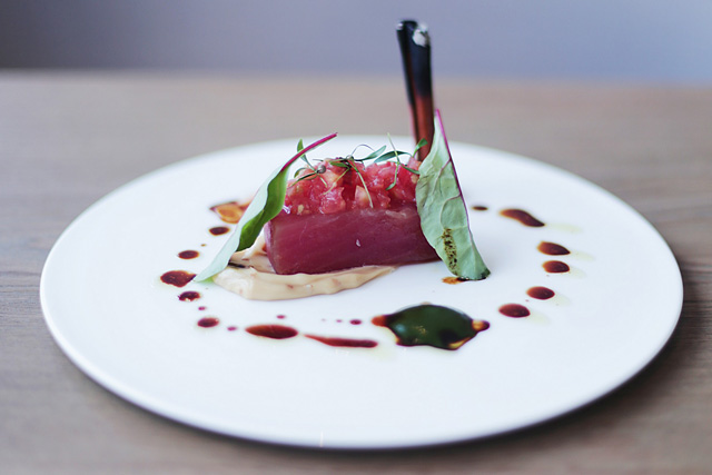 Раздел салатов наверняка составлен по заявкам бизнесменов, занимающих 40 этажей «небоскреба», но и сюда пробрались галисийский salpicon de pulpo — осьминог с яркой овощной сальсой (870), и шведский grävlax — лосось, прошедший выдержку в коньяке, и замаскированный дольками спелой сливы и взрывными апельсиновыми икринками (980 руб.).