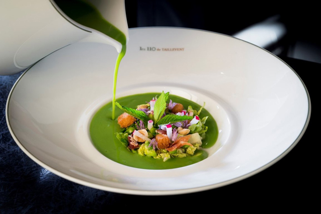 Хорошо и просто практически все: глубокий темно-зеленый цвет в интерьере (а другого в нем, считай, и нет), который выглядит очень по-лондонски, отсутствие каких бы то ни было акцентов (читаем намек авторов ресторана, что, мол, все самое главное на тарелке), а также то, что фотографии членов команды — вплоть до ассистента сомелье — выложены на сайте заведения. Последнее, кстати, создает очень дружелюбный настрой по отношению ко всем, кто к атмосфере в Les 110 de Taillevent причастен.