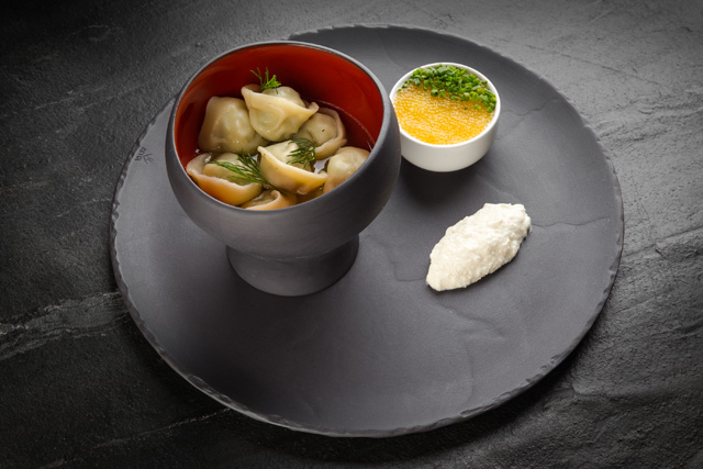 Рафинированная, лаконичная, не перегруженная — именно эти слова определяют кухню Шмакова, респектабельно мешающего традиции и современность. В ней есть место и старинному рецепту борща с осетром, и древней полбе, и напрямую ассоциирующейся с советской кухней манке. Только все это он переосмысливает как истинный творец. Так и появляется осетр с соусом борщ (1 350 руб.), капустой пакчой и топинамбуром в трех видах: печеном, вареном и чипсах. Блюдо, способное потрясти тонкую натуру простотой и неожиданностью вкуса.