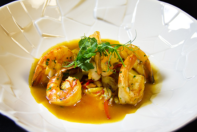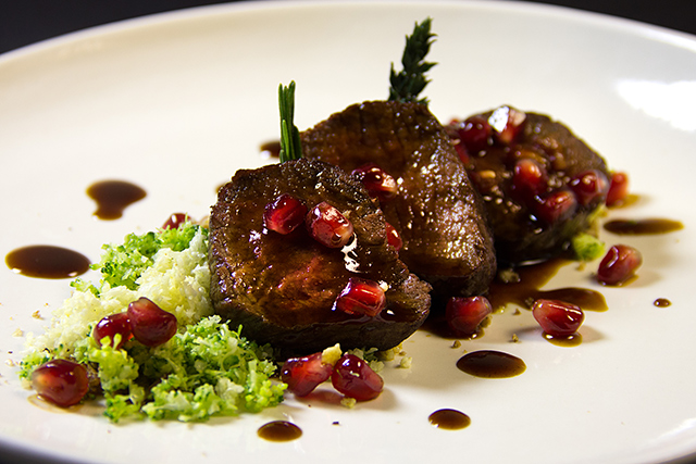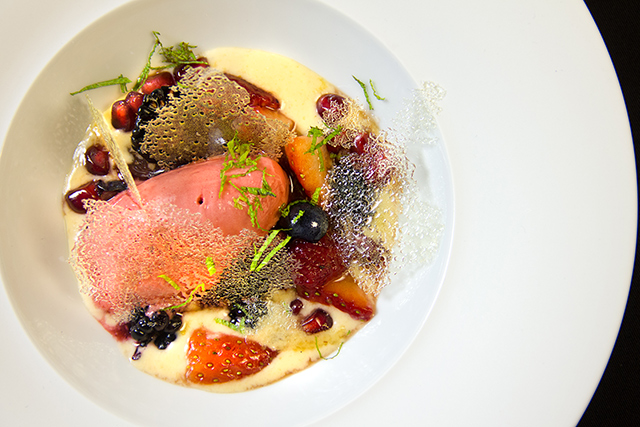 Русская проекция сквозь призму европейского опыта шефа выглядит наиболее интересно, хотя и в других его блюдах сохраняется тема противопоставлений. Тема «море-суша» звучит в паэлье с креветками, кальмарами и курицей и в горячей закуске из креветок с белыми грибами. К ним добавлен соус mar y montaña, смесь демигласа и рыбного фюме. Сладковатую, с железистым привкусом печени, оленину сопровождает «кускус» из измельченной брокколи и цветной капусты. Свежие ягоды с ягодным сорбетом и карамельными чипсами лежат на подушке нежного крема из овсянки.