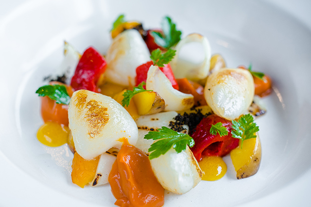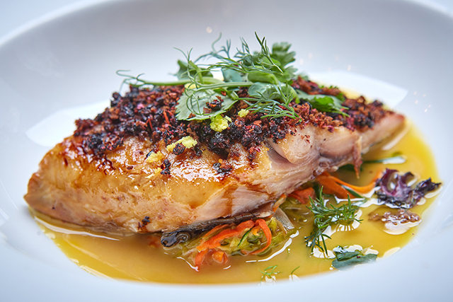 Салат с дальневосточным кальмаром, апельсином и авокадо (590 руб.), беломорская треска с брандадой из зеленых оливок и кремом из моцареллы и оливкового масла (790 руб.), кальмар на гриле с соусом ромеско и ароматизированным маракуйей маслом (690 руб.) — все это отлично идет под холодное белое вино в ресторане Адриана Кетгласа. К проверенным хитам шеф добавил астраханского судака с киноа, брокколи и легким соусом из оливкового масла (760 руб.) и серию тапас, среди которых фигурирует крокета с кальмаром и воздушным айоли с лаймом и тартар из корюшки с сельдереем, маринованной свеклой и яблоком. Образцовый пример того, как из самой простой рыбы можно создать гастрономический шедевр.