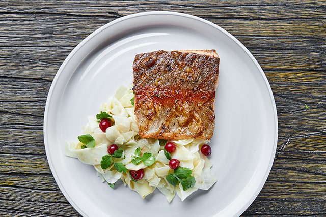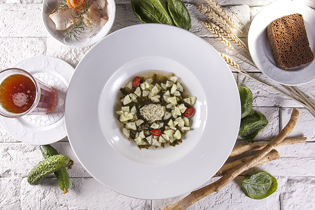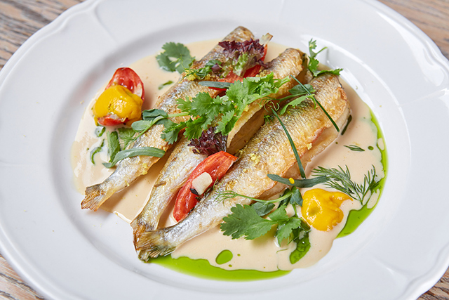 Байкальского омуля шеф-повар запекает в сковороде под маринованными виноградными листьями (710 руб.) в пару к розмариновому картофелю и квашеной капусте с ядреной клюквой, варит из него уху, добавив еще и муксуна, томаты и сельдерей (500 руб.) и готовит из него салат с обжаренным в сливочном масле молодым картофелем и листьями мангольда (610 руб.). В ресторане можно попробовать знаменитую строганину из муксуна (570 руб.). Из этой рыбы тут еще готовят пикантный суп с домашней квашеной капустой (560 руб.) и космополитичное блюдо с кальмарами и пряным сингапурским сливочным соусом (960 руб.). Озерную ряпушку жарят и подают с сырным соусом и итальянской полентой (660 руб.), или томят в соусе из томатов, маслин, оливок и пряных трав (690 руб.). Крымскую барабульку обжаривают на чугунной сковороде (820 руб.), северную сельдь отправляют в форшмак (380 руб.), а питерскую корюшку на гриле гарнируют молодыми весенними овощами (550 руб.).