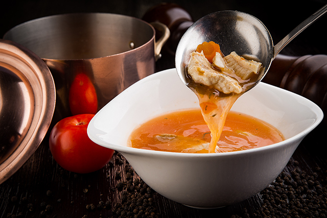Барабулька в хрустящей панировке (690 руб.), радужная форель (подкопченная или запеченная в виноградных листьях) (850 руб.), жаренный в муке бычок (490 руб.), дальневосточная сардина (380 руб.), она же сельдь иваси, — все это, конечно, прекрасно, но самая главная вещь в старинном купеческом особняке — ботвинья (480 руб.). Этот холодный летний суп был гораздо важнее окрошки в России XIX века. Шеф «Обломова» Юрий Башмаков готовит ее на домашнем квасе, с щавелем, огурцами, хреном. Отдельно подают тарелку со льдом, на котором выложена рыба — треска, семга, омуль. Рыбу можно добавить в суп, смешав с кусочками льда, или же просто закусывать ей.