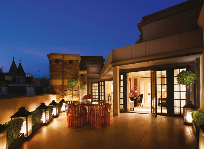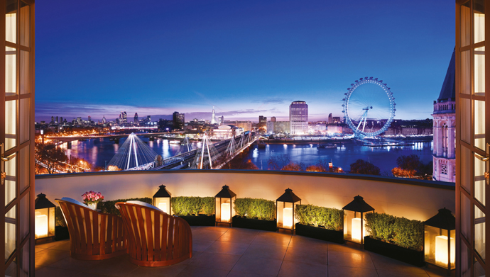 Пятизвездочный лондонский отель продолжает ставить рекорды. Cамый большой из семи пентахусов отеля, самый просторный среди всех лондонских отелей, а также один из самых больших и роскошных в Лондоне – The Royal Penthouse площадью 465 кв. м. находится именно здесь. C террасы этого поистине королевского номера открывается завораживающий панорамный вид на Темзу и весь город от новомодных особняков в престижных районах Knightsbridge и Belgravia, Собора Святого Павла, колеса обозрения London Eye до небоскребов Canary Wharf.