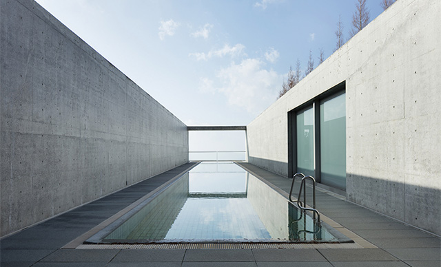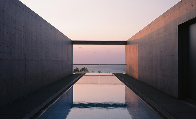 В случае с ретрит-отелем на Сикоку идея минимального вмешательства в ландшафт проявилась вполне: бетонные стены здания не нарушают спокойствия островных холмов, а длинные линии Setouchi Retreat Aonagi вторят линии горизонта.