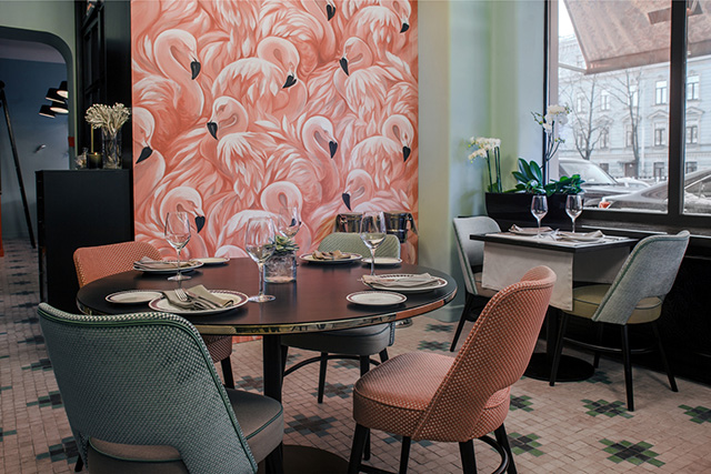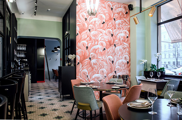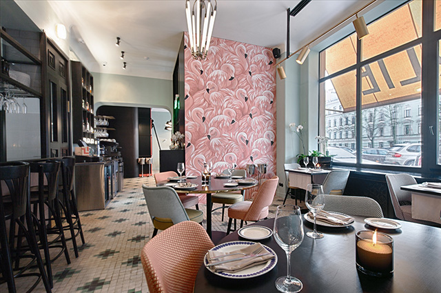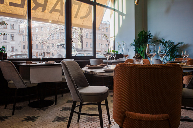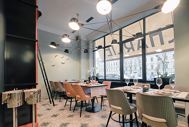 За углом бурлит бешеным трафиком торговая Сенная площадь, а здесь — оазис буржуазного спокойствия. Линии ар-деко будто из интерьеров нью-йоркского Chrysler Building уносят в эпоху чарльстона и Чарли Чаплина. Оптимистичный «банановый» витраж навевает мысли о не случавшейся в реальной жизни коллаборации Tiffany и Уорхола. Розовые фламинго со стены нашептывают слова из нетленного хита Алены Свиридовой и превращаются в мастшот. За огромными витринами — почти амстердамский пейзаж, и только случайная русскоязычная вывеска на противоположном берегу канала напоминает о том, кто же на самом деле пьет шампанское по утрам. Совсем скоро, по весне, здесь откроют окна и выставят столики на набережную, но уже сейчас Charlie — отличное место, где можно безнаказанно бездельничать.