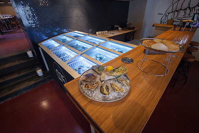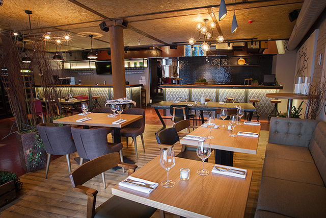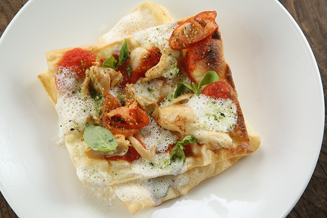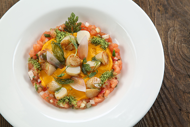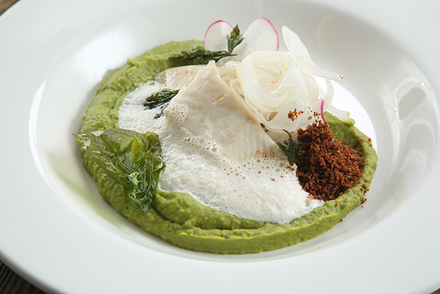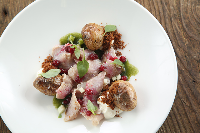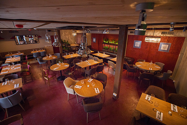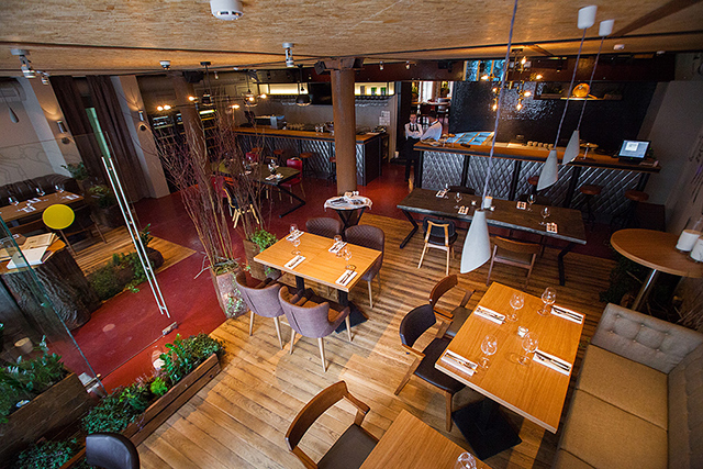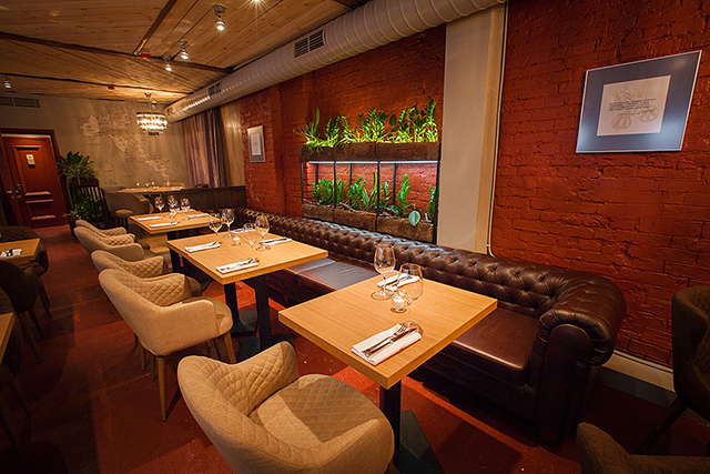 Устрицы, гребешки, морские ежи, вонголе, мидии, крабы и прочая живность из аквариума пользуются немалым спросом у любителей холодного белого. Но гораздо большее воодушевление вызывают карпаччо из северных креветок с невероятными хрустящими овощами и соком юзу (540 руб.) и камчатский гребешок с кремом из моркови и терияки (740 руб.). Превосходный запеченный козий сыр с вешенками и эстрагоном (440 руб.) подойдет и к плотным белым, и к легким красным винам. Овощной салат с мягким козьим сыром (480 руб.) демонстрирует не только склонность Казакова к сложным составам, образующим легкую пелену вкуса: к овощам он добавляет желе из яблок, а заправляет салат томатной водой. Еще одна любовь повара — дикорастущие травы. Синдрик (купена), пеппер, синдах, мандак (овощная хризантема) появляются то тут, то там, расставляя деликатные акценты чуть вяжущей растительной свежести. Обжаренный кальмар с картофелем и каперсами (490 руб.) — ум отъешь — и трубач с картофельной шарлоткой и яблоком (580 руб.) демонстрируют, как хорошо Казаков обращается с капризными морепродуктами. А передержанная телятина с трюфельным соусом и хрустящий кролик с фенхелем и облепихой (540 руб.) — как важно постоянное внимание к мелочам на кухне нового ресторана.