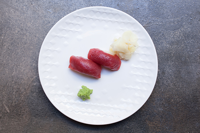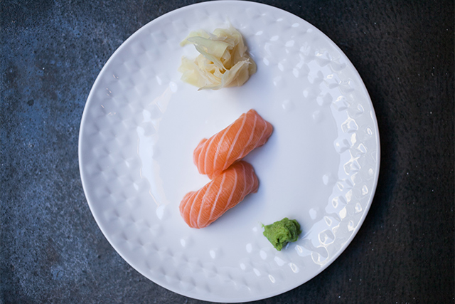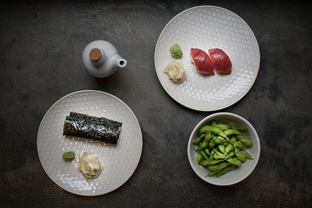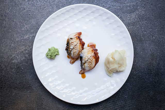 Два основных раздела меню — суши и гриль. Первые делают из свежайшей рыбы, самолеты с ней летят из Японии трижды в неделю. Суши с лососем, сибасом, морским гребешком, тигровыми креветками, угрем (320 руб.), тунцом альбакор (420 руб.), желтохвостом (440 руб.), тунцом блюфин (490 руб.), креветками ботан (500 руб.), морским ежом (1 200 руб.) делают с теплым рисом. Он буквально растворяет тонкий слой васаби, которым промазан рисовый колобок, и заставляет открыться рыбный аромат. Особенно хорошо этот фокус удается с креветками ботан — сразу чувствуешь их кремовый, маслянистый, сливочный вкус. Берите две порции, не пожалеете. К тому же в порции всего два суши.