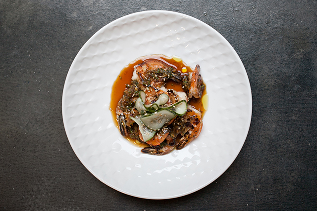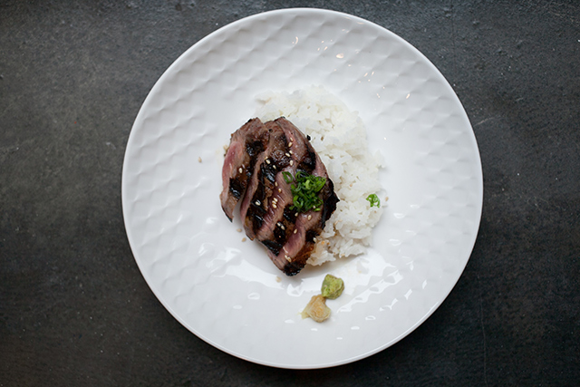 На гриле, любимом Баллисом хоспере, жарят сочную пухлую курицу с терияки, имбирем и рисом (490 руб.), говяжью вырезку с вафу соусом и печеными помидорами (790 руб.), брокколи с васаби-кремом и бонито (420 руб.) и похожий внешне на карпа в кисло-сладком соусе печеный пряный баклажан (420 руб.).