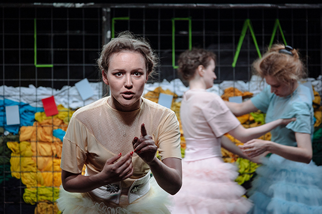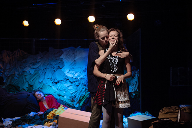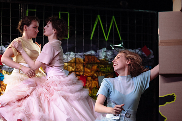 Свои истории они рассказывают друг другу в переписке, иногда отвлекаясь на то, чтобы швырнуть в зрителей смятыми футболками. Фолькер Шмидт задается здесь вопросами о том, как далеко готова пойти каждая в стремлении улучшить собственную жизнь. Например, Лизль, которая мечтала хоть раз оказаться на оперном балу (ну, конечно, она же из Вены) и была готова копить на билет полжизни, теперь расхаживает по таким каждый день и быстро начинает воспринимать это как должное. Кати, наоборот, смиренно принимает все трудности и живет одними лишь мыслями о сыне. А Ханни, не забыв о своей бунтарской сущности, устраивает очередную забастовку. На сцене, кроме трех девушек, никого, но за два часа они не раз превратятся и в местного дипломата, и в его холодную жену, и во влюбившегося в проститутку Лизль юношу.