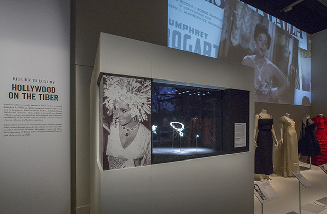 Расшитое серебром платье Mila Schön, в котором сестра Джеки Кеннеди Ли Радзивилл появилась на черно-белом балу Трумена Капоте, образцы тканей, выбранных Эдуардо де Филиппо для костюмов в ателье Рубиначчи, знаменитые изумрудные украшения Bvlgari, принадлежавшие Элизабет Тейлор, — среди более чем ста экспонатов выставки The Glamour оf Italian Fashion 1945—2014. Хотя куратор этой экспозиции Соннет Стэнфил совсем не собиралась показывать именно моду для звезд, выставка все равно во многом состоит из "больших имен" клиенток и дизайнеров. Собственно, она и началась как большое светское событие, с ужина по случаю открытия, на котором были все "генералы" итальянской моды от Валентино Гаравани до Франки Соццани. И все же, демонстрируя заявленный в названии выставки гламур, Стэнфил хотела выяснить совершенно другое: каким образом в Италии возникла столь мощная индустрия моды?