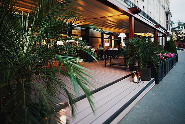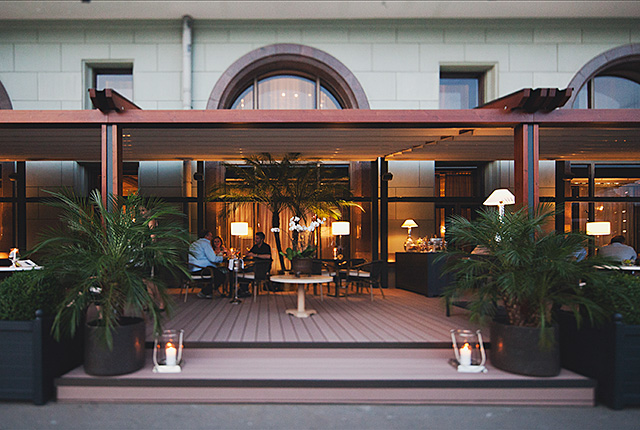 Незаурядную коктейльную карту ищите у стен гостиницы "Метрополь" — с начала месяца здесь полным ходом работает терраса Simple Place. Специально для проекта постоянный шеф-повар отеля Андрей Шмаков разработал особое летнее меню: суп с кремом из копченого осетра (750 р.), окрошка на кефире с зеленью и креветками (550 р.), кефаль с соусом из раков (1100 р.), дорадо в соли (1300 р.), филе ягненка с эмульсией из черемши (1300 р.) и другие изыски обойдутся примерно до 2500 рублей.