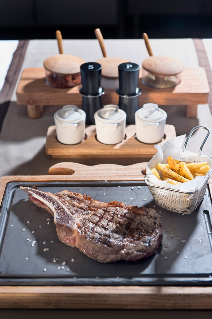 В стейк-ресторане Grill 93 непременно закажите стейк рибай или филе-миньон. Стол сервируется шестью видами соусов: домашняя горчица, барбекю, грибной, "демиглас", сливочный и соус из хрена.