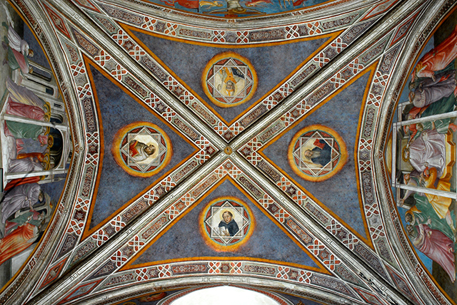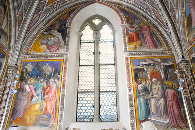 Дело, конечно, в самом месте — здания аптеки, в которых она без всяких потрясений размещается с начала XVII века, это памятник истории и культуры и, надо отдать должное, их поддерживают в идеальном состоянии. Но кроме просто красивых залов с расписными плафонами XVII века тут есть, например, совершенно замечательная часовня Святого Николая, полностью покрытая фресками раннего XIV века — Мариотто ди Нардо, тосканского художника круга Джотто. В XIX веке, как часто бывало, их записали и только после большой реставрации в 2012 году снова стал виден весь цикл страстей Христовых на стенах часовни и Святой Бернард из Квинтавалле, Святой Бенедикт, Святой Фома и Святой Николай Чудотворец на потолке. Прийти в эту аптеку, кстати, единственный способ увидеть несколько внутренних двориков бывшего монастыря, которые сейчас принадлежат карабинерам и закрыты для публики.