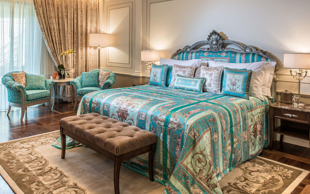 Чувственность, откровенность и яркость, которая бросается в глаза, словно хищный зверь на добычу, — отличительные черты модного дома Versace. Именно они и послужили основой для стиля внешнего и внутреннего облика отеля Palazzo Versace Dubai, расположенного на берегу Дубайской бухты. Стиль гостиничного комплекса повторяет лучшие образцы неоклассической архитектуры, итальянских дворцов XVI века. Сверкающий белизной мрамор, красочные мозаики, высокие потолки, украшенные золотыми элементами, а также мебель, созданная лучшими итальянскими мастерами придают величие гранд-отелю. Дизайн интерьеров и мебели разрабатывала сама Донателла Версаче. Узнаваемые мотивы модного дома — голова горгоны-медузы и греческий орнамент — украшают Palazzo Versace Dubai, словно автографы. При одном вгляде на этот отель сразу становится понятно, кому он принадлежит. Помпезности ему не занимать: каждый номер выглядит очень богато и самодостаточно благодаря мебели и аксессуарам из коллекции Versace Home Collection. Широкие окна заливают пространство светом утром и днем, а вечером с этой функцией отлично справляется множество светильников самых разных форм и размеров. Большая пышная кровать позволит выспаться и набраться сил, которые затем можно будет потратить на шопинг, ведь Palazzo Versace Dubai находится всего в 10 минутах езды от центра Дубая.