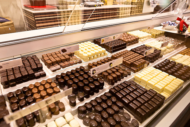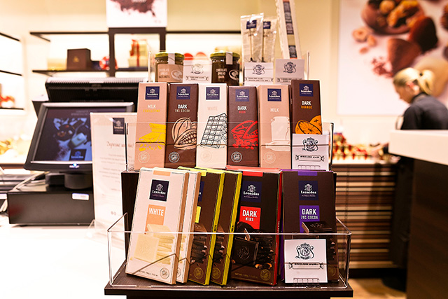 Бельгийская компания с сотней точек продаж по всему миру наконец донесла культуру потребления шоколада до нашей страны — прилавки нового бутика предлагают множество вариантов, от классических сливочных и карамельных до гурманских, например, бергамота с атлантической солью. Пралине, марципаны, цукаты, мармелад, шоколад без добавления сахара и другие сласти можно попробовать, как говорится, не отходя от кассы: рядом с витриной разместили небольшую кофейню с девятью столиками, где за чашкой кофе или травяным чаем можно насладиться вкусом настоящего бельгийского шоколада.