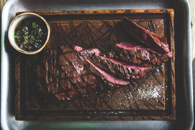 Альтернативные стейки сложно добывать — еще на этапе разделки туши они большей частью отправляются в обрезь и перерабатываются. Даже если удается найти нужный кусок мяса, в России не так много мясников, которые могут его правильно разделать и обработать. Например, скерт нужно хорошо зачищать от жил и пленок. Если провести эту работу, то получится стейк с насыщенным утробным вкусом. Пиканью легко отличить по внешней оболочке жира. Это самая сочная и живая альтернатива. Резать ее надо против волокон — так и вкус, и текстура лучше раскроются. Подобным нюансам гостей учат официанты и уделяют этому большое внимание: если обычный потребитель не создаст спрос на рынке, то гастрофашистский режим не скоро сменится осознанным потреблением.