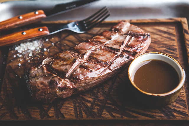 «Мы (и шефы, и потребители) привыкли к премиальным стейкам, как рибай или филе миньон, — говорит сооснователь митерии (так обозначен жанр заведения) Дмитрий Левицкий. — Но у рибая нет ног. На премиальные стейки идет не больше 10% туши, остальное уходит на переработку. Из этого прямо следует, что фермеру нецелесообразно выращивать корову, от которой он продаст 10—12%. Это рождает не только высокую конечную стоимость премиальных стейков, но и нагрузку на окружающую среду: достаточно сказать, что одной корове нужно не меньше гектара пастбищ для свободного выпаса. Забой животного ради десятой части туши мы считаем гастрономическим фашизмом», — говорит Дмитрий.