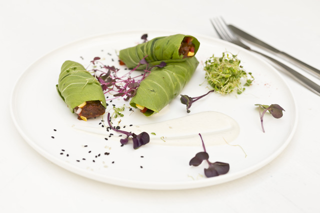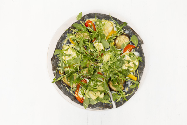 На обед стоит заказать фо-ху — вьетнамский суп с лапшой из черного риса, тофу гриль и капустой пак-чой (350 руб.), хэнд-ролл с темпе (ферментированные соевые бобы) в кисло-сладком соусе с ананасом и ростками в рисовой лепешке (550 руб.), стейк из капусты с бататом и горчично-медовым соусом (550 руб.) или домашнюю черную пасту (для цвета и пользы в нее добавляют активированный уголь) из цельнозерновой муки с горячим соусом из авокадо (550 руб.). Углем подкрашивают и тесто для пиццы с запеченными овощами и горчично-медовым соусом (550 руб.). За эти же деньги отдают пиццу со свежим шпинатом и пиццу на зеленом тесте со свежими помидорами и базиликом. Сыр для пиццы выбирают без сычужного фермента, чтобы подходил лактовегетарианцам.
