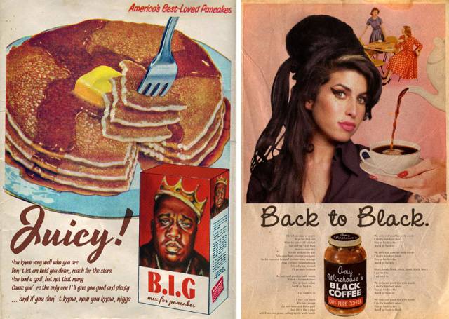 Французский художник Давид Редон пишет историю музыки в постерах: Канье Уэста он видит на американском военном плакате We Can Do It 1943 года, Бейонсе — кричащей о том, что девушки правят миром, Daft Punk — рекламирующими казино Get Lucky. Каждый постер Редона, будь то подобие военной пропаганды или винтажный рекламный щит, отражает карьеру его героя. Nirvana представляют "новый аромат" со слоганом "Smells Like Teen Spirit", а Эми Уайнхаус рекламирует кофе Back To Black — смотреть на плакаты нужно именно под эту музыку.