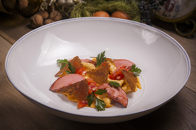 Венец всех этих гастрономических игр — сливочная карбонара с беконом. Приготовленная из пасты кораллини, видом она напоминает ризотто, но ее изюминка — искусно сваренное яйцо. Очищенное, оно сохраняет форму вареного яйца, но текстуры и белка, и желтка так нежны, что пары уверенных ударов вилкой достаточно, чтобы превратить его в соус. Яйцо для Cook’kareku — продукт априори более важный, чем курица. Даже официантки все как одна щеголяют в сережках в виде сковородки с яичницей-глазуньей. Не говоря уж о впечатляющем десерте-обманке, "яйце" из кокосового молока с желтком из манго, артистично копирующем внешность только что сваренного вкрутую и не слишком бережно очищенного куриного яйца.