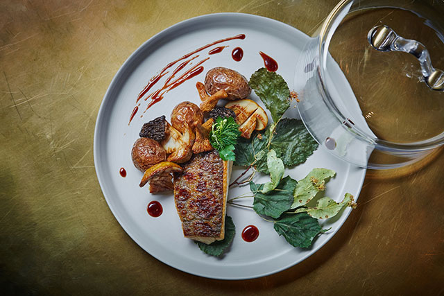 Только не обольщайтесь знакомыми названиями. Тригелю на кухне «45 параллели» есть где разгуляться, каждый рецепт он перелопачивает, так что парень из Айовы вряд ли узнает в сладком, со сливочным привкусом, кукурузном супе с семечками тыквы и роллом из курицы с чернилами каракатицы (460 руб.) домашнюю стряпню своей мамы. Тригель отчаянно фантазирует на кулинарные темы и выдает впечатляющий результат. Оссобуко из ягненка (980 руб.)? А что мешает заменить телятину на баранину? Речная форель на гриле с липой и лесными грибами (1 700 руб.) в качестве канадского рецепта? А разве в Канаде нет лип, форели и грибов? Свернутое в форме сосиски суфле из зубатки, похожее на соленый зефир (1 600 руб.)? Французы, особенно лионцы, обожают зубатку! А дюксель из порея и соус из раковых шеек им вообще как родные. Тригель не ленится составлять каждое блюдо в виде затейливого конструктора, кто знает, тот поймет и трудоемкость техник, и качество продуктов.