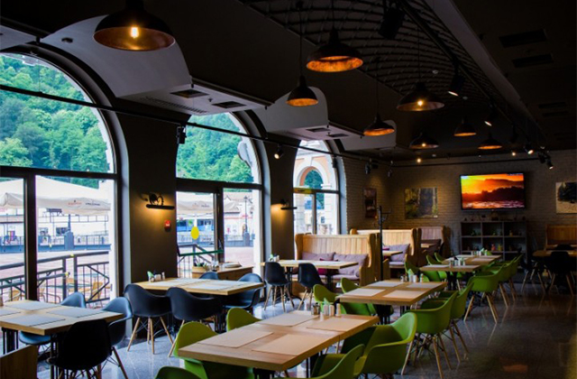 Кафе в здании ратуши «Роза Хутор» собирает в зале и на террасе с видом на горы и ошеломительный закат весь цвет отдыхающего общества. Стены зала с длинной барной стойкой (статус après-ski обязывает поить до потери сознания) украшают горнолыжные ретропостеры, а на экранах крутят соревнования по экстремальным видам спорта. В меню значатся италоориентированные хиты вроде брускетт и пиццы, но основное внимание уделяют более существенному питанию вроде ребер барбекю с квашеной капустой и пуховых крабовых котлет с такой ценой, что грех пройти мимо. Ближе к снегу начнут готовить фондю из местных сыров: сулугуни, моцареллы, дорблю и пармезана краснодарского производства.