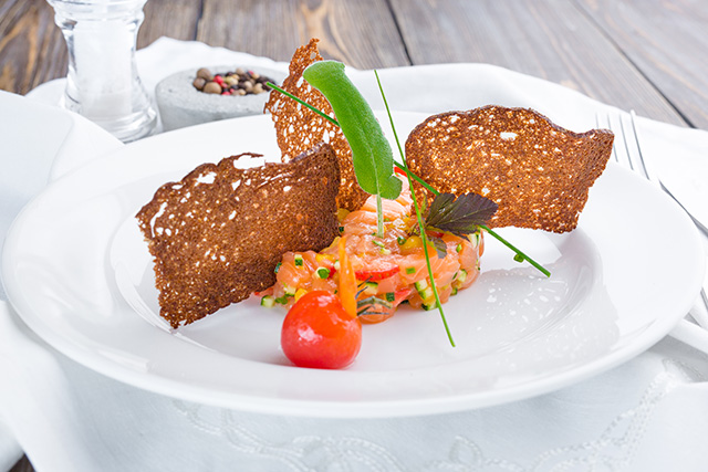 Не один год проработавший бренд-шефом в пиццерии Bocconcino Кирилл Кармалов выбирает для своей кухни лучшие из доступных продуктов. Стандарты качества дорогой сети, перенесенные на кухню собственного ресторана, дают поразительный результат. Тартар из лосося с тайским манго, клубникой, цуккини и лаймовой заправкой (390 руб.) в интерьере побогаче стоил бы втридорога. Вполне убедительный кальмар с чесноком (260 руб.) антивампирским освежителем только пугает чувствительных особ, тогда как сам кальмар служит лакмусовой бумажкой умению обходиться с капризным морепродуктом. Паштет из куриной печени (410 руб.) готовится так затейливо, что сохраняет нежный розовый цвет. Подают его с медом — и это одна из лучших пар в городе. Буррата, которую тут записали по рангу закусок, родом из Владикавказа. И это тот самый итальянский вкус, которого мы лишены из-за санкций. Сочащийся сливочный комок стоит 680 руб., основные блюда: паста, ризотто, мясо, рыба — стоят от 380 до 690 руб. Большая часть выглядит по-мужски, хотя ризотто с вином амароне, рикоттой и копченой скаморцей, спагетти с вонголе, запеченное филе дорады с оливками каламата, шпинатом и хрустящими овощами или нежнейший осьминог с молодым горошком вполне могут составить легкий ужин.