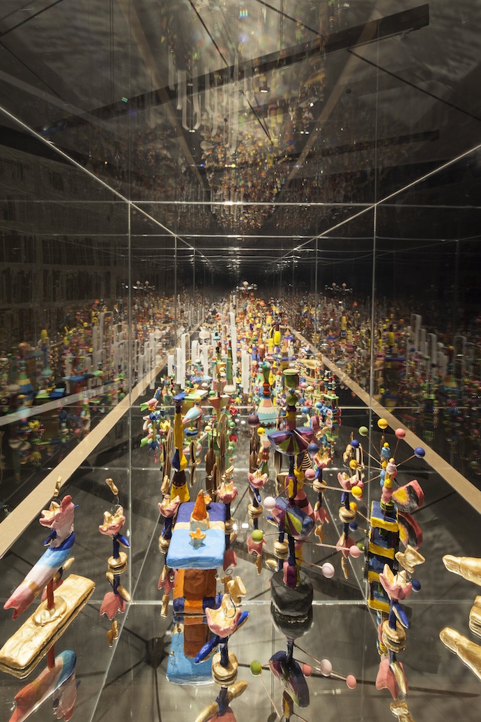 Накануне открытия ярмарки современного искусства VIENNAFAIR, уже второй год проходящей в Вене под эгидой русских (бизнесмены Дмитрий Аксенов и Сергей Скатерщиков в прошлом году приобрели 70% ее акций), Пэй Уайт представила свою новую экспозицию O R L L E G R O в венском музее прикладного искусства MAK. Если пройти в зал Vienna 1900 (с тканым полотном Густава Климта, а также мебелью, посудой и предметами дизайна по эскизам Йозефа Хоффмана и Коломана Мозера), а затем подняться по лестнице на верхний уровень, то там вы и найдете несколько последних работ американской художницы.