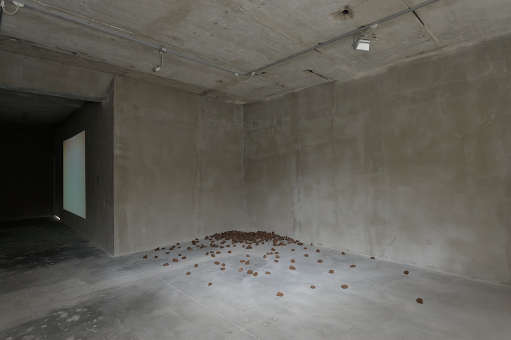 Первый зал выставки поначалу кажется пустым, но, присмотревшись, в нем можно найти три работы: 1) маленький зеленый круг, который Пьер создал процарапав часть гипсокартонной стены, чтобы показать слои зеленого цвета, изображая, таким образом, "жизнь" стен (как если бы музей был живым деревом); 2) колонию муравьев, бегущих по стенам и 3) обитающего в углу паука. Эти работы отсылали к выставке 2011 года, которую Пьер проводил в своей берлинской галерее Esther Schipper Gallery. Она называлась Influants и представляла живых пауков и муравьев, а также "грипп" в виде чихающего работника галереи, который выступал "больным" волонтером на выставке. Все это я узнала от Флориана Лудде из галереи Esther Schipper, который провел нас по выставке и отметил множество такого рода необычных деталей.