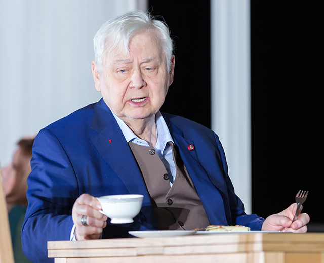 В решительности Олегу Табакову не откажешь: не каждый худрук выберет к своему 80-летию пьесу о смерти и вручит ее Константину Богомолову. Литературный первоисточник ждала точечная хирургия: режиссер методично удалил из него лишние сцены, решения и повороты мысли. В итоге сильная, эффектная, но довольно кассовая история, которая завершалась грохотом стиральной машинки («теперь можно купить новую»), превратилась в тонко сработанное размышление о вечном, погружающее публику в созерцательный транс. Вывести из него способны лишь всезнающие белые буквы, лаконично подсказавшие: «Аплодисменты».