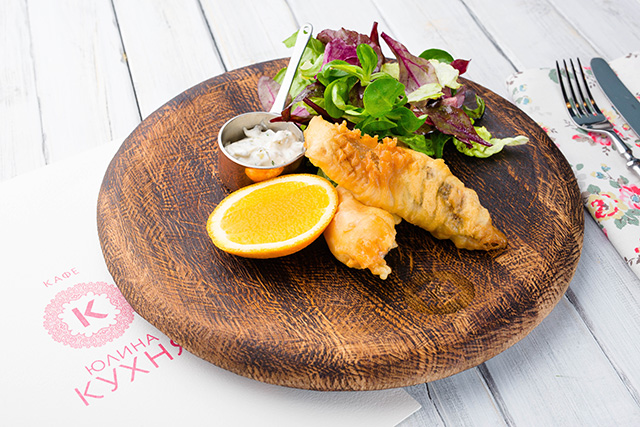 Увы для Юли, шеф-повар проекта Артем Горчаков не справляется с теми ожиданиями, что возлагают на него и реноме ресторатора, и солнечный интерьер созданного ею заведения. Мини-драники из исследования вкуса картофельной оладьи с бочковой сельдью (160 руб.), кабачков со слабосоленой семгой и мятой (270 руб.), свеклы с мягким сыром превращаются во встречу с тонким, как лист бумаги, основательно прожаренным и промасленным недоразумением. В симпатичной вариации на классический нисуаз, салате из жаренной в ржаных сухарях тюльки с картофелем, зеленой фасолью, печеным перцем и перепелиным яйцом-пашот (420 руб.), явно перебарщивают с горчицей в заправке. Звонко-кислый, едва приваренный бульоном с картошкой щавель сложно назвать зелеными щами (470 руб.), хотя их и стоит пробовать ради замечательной ватрушки с творогом — ради нее одной можно в «Юлину кухню» возвращаться.