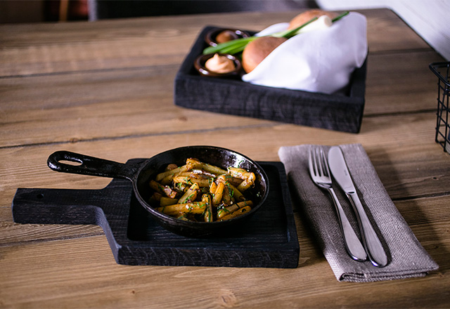 Стейки (690—2 900 руб.) в «Южанах» отнюдь не самая важная часть меню. Чтобы окунуться в атмосферу юга России, где на стол выставляют пахнущее жареными семечками подсолнечное и сахарными кукурузными палочками кукурузное масло, смешанную с перцем и маслом соль и хрустящий домашний хлеб, где не стесняются есть руками и подсмеиваются над столичной привычкой препарировать еду ножом и вилкой, где в соленьях нет скучной черемши и чеснока, зато есть моченые сливы и виноград, берите блюда менее чопорные. Например, пол говяжьей голяшки (1 500 руб.), тушенной в чугунке. Примерно килограмм хорошо растушенного мяса приносят на доске в сопровождении плошек c пряными травами и крепкого бульона. Растормошите мясо на куски, окунайте его в бульон, отправляйте в рот и закусывайте фиолетовым базиликом и эстрагоном. Зажмурьтесь, чтобы почувствовать крепкий степной вкус.