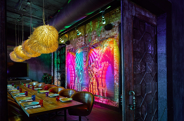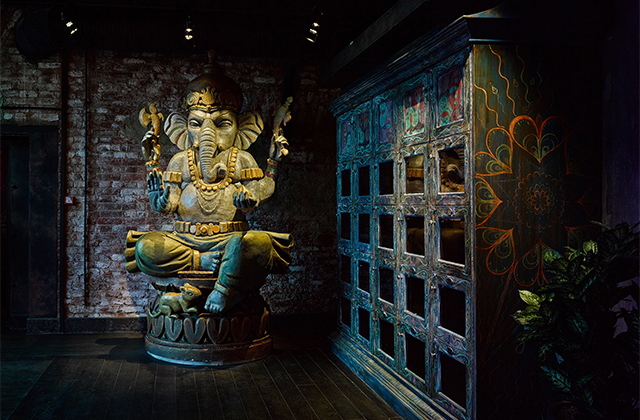 Сентиментальная мелодрама про плывущего с тигром в шлюпке индийского мальчика-сироту в огромном пространстве лофта над бутиком Игоря Чапурина превратилась в клуб с индийским колоритом. Ради него придуманы фотоколлажи Сергея Мальцева (их используют для обложек меню и настенных панно), ради него Маша Цигаль нарядила официантов в саронги и сальвар-камизы, ради него колонны облицевали резными панелями. В каминном зале развесили эротические лубки, привезенные из Индостана, а зал с караоке украсили панорамным окном с видом на кухню, где трудятся индийские повара под водительством Раджандара Сингха, долгое время работавшего в сети отелей Taj Group в Дели.