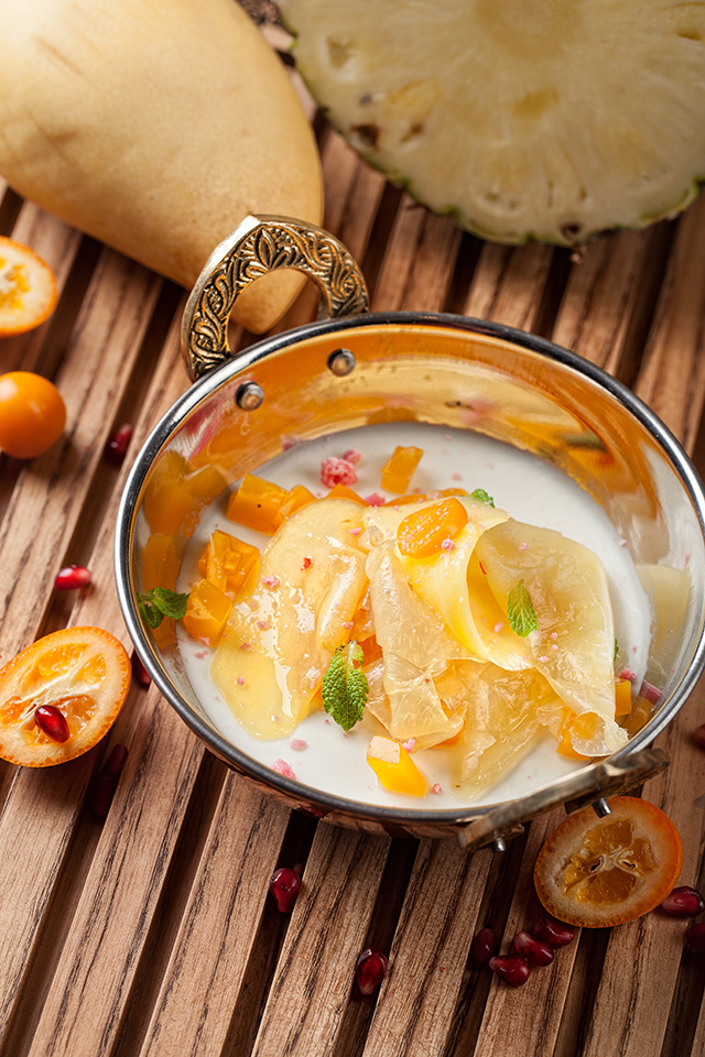 «Жизнь Пи» — одно из немногих мест, где будет привольно вегетарианцам. Пряный суп из красной чечевицы (250 руб.), превосходный палак панир (350 руб.), овощи и сыр, запеченные в тандыре, карри и прекрасный рис басмати составляют полноценное «зеленое» меню в индийском стиле. Среди десертов выделяются морковная халва с йогуртовым кремом (350 руб.) и трубочки луглу с домашним творогом (400 руб.). Трубочки делают из тонко раскатанного сушеного инжира, что превращает их в кондитерскую метафору шанти — этим словом древние Веды обозначают покой и безмятежность.