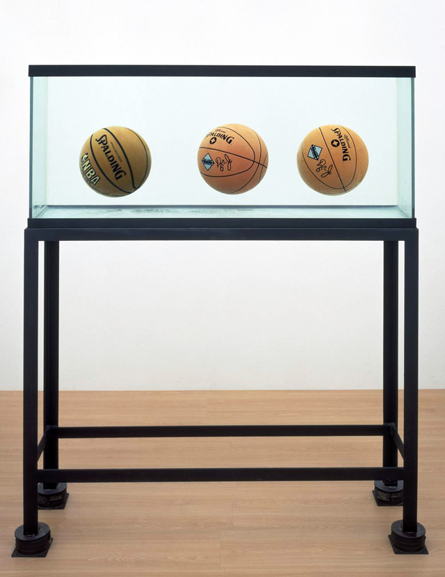 Раннее искусство Кунса — это концептуальная скульптура. Ярчайший пример — работа "Три мяча 50/50 Бак" 1985 года, недавно показанная на выставке коллекции Дэмиена Херста в Мультимедиа Арт Музее. Херст бережно хранит аквариум с баскетбольными мячами, а мы можем не сомневаться, что именно эта работа Кунса в числе прочих повлияла на его скульптуры с коровами, овцами и акулами, помещенными в формальдегид.