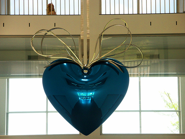 Розовое металлическое сердце Heart — еще одна из самых известных работ Джеффа Кунса. В 2007 году она установила мировой рекорд на нью-йоркском аукционе Sotheby's и была продана за $23,6 млн. Существуют и другие варианты: в золотом, фиолетовом, ультрамариновом и бирюзовом цветах. Гигантские металлические сердечки Джеффа Кунса можно назвать современным аналогом культовой скульптуры LOVE Роберта Индианы. Американский скульптор также воспевает любовь в металле и делает свои скульптуры похожими на конфеты в блестящей обертке.