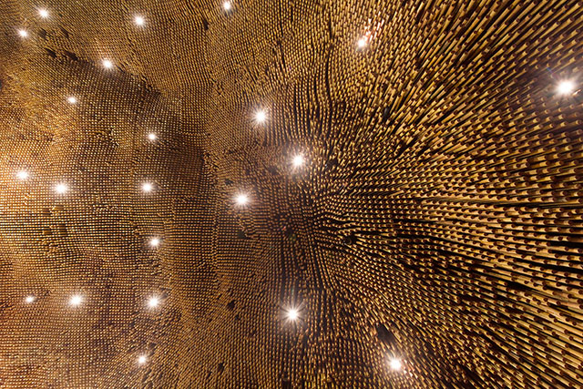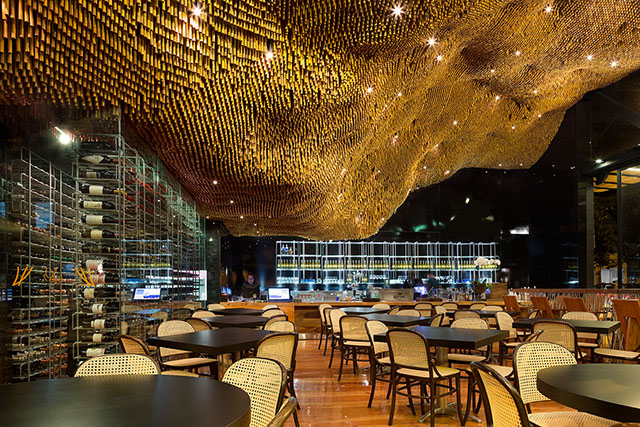 Белу-Оризонти в последнее время так и манит все новыми и новыми открытиями. После интерактивного бара и виллы Casa Cor мы думали, что интереснее быть уже не может, но нет. Не так давно в городе на юго-востоке Бразилии открылся ресторан Olga Nur — с правильно расставленными акцентами и непринужденной атмосферой. В пользу последней говорят забавные фотографии посетителей, оставленные на странице ресторана в Facebook. А насчет акцентов судите сами: при довольно скромном и выдержанном интерьере заведения решиться на огромное облако из 80 000 деревянных столбиков нужно иметь смелость и уверенность в том, что впечатляющий потолок будет не единственным козырем твоего ресторана, и кухня в этом смысле тоже не подведет.