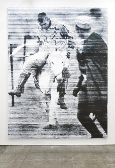 Меня сразила ироничная прямолинейность этого творческого дуэта из Пуэрто-Рико и их критический взгляд на Америку. На "Арт Базеле Майами Бич" в 2010-м я чудом приобрела черно-белую Intermission (Halloween Iraq3), на которой изображены американские солдаты, катающиеся на ослах.