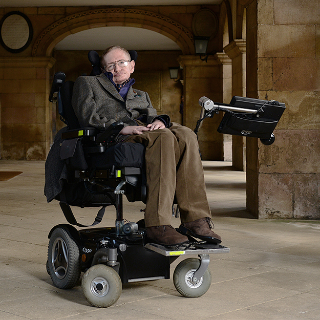 Практически всю свою сознательную жизнь Хокинг провел в инвалидной коляске — еще в 22 года ему был поставлен диагноз «боковой амиотрофический склероз». Врачи прогнозировали, что молодой ученый будет жить не больше нескольких лет, но ему повезло: болезнь развивалась медленно и только в 40 лет он лишился способности говорить. Тогда американские инженеры подарили ему ставший культовым компьютер для распознавания речи. Спустя многие годы способность двигаться сохранила одна мимическая мышца щеки, к ней и был подсоединен датчик для работы с этим компьютером. Болезнь не помешала Хокингу заниматься открытиями, популяризировать науку, два раза жениться и завести троих детей, а еще Хокинг летал в космос и озвучивал в «Футураме» самого себя.