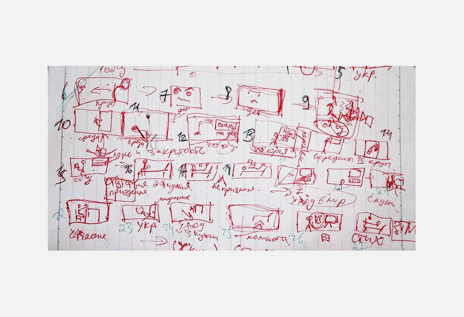 «Действие» — содержание/описание кадра (копируется из литературного сценария) с дополнительными комментариями режиссера.
