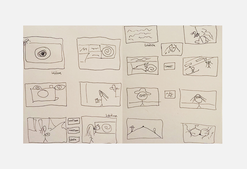 «Кадр» или «раскадровка» — схематичное изображение кадра из раскадровки.