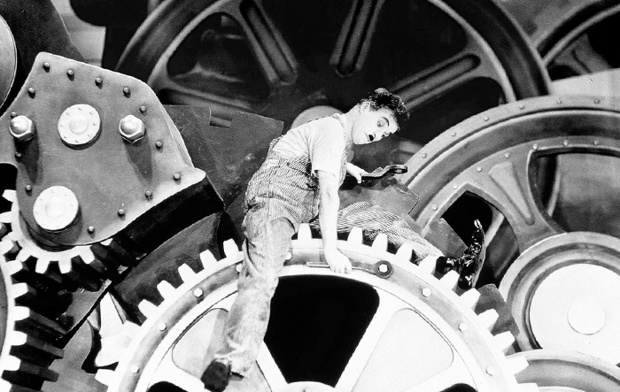 Герой Чарли Чаплина вкалывает на заводах до изнеможения, но быстро теряет работу, оказавшись бродягой, встречает пресыщенных богачей и насмехается над ними, попадает в эпицентр протестов рабочих, которые разгоняют дубинками. Его ранимый герой противопоставлен системе бесконечного потребления, которая не заботится о людях, даже когда дает сбой. Разве не символично, что в ноябре 2019 года в России «Новые времена» выпустили в повторный прокат? Они что-то знали!