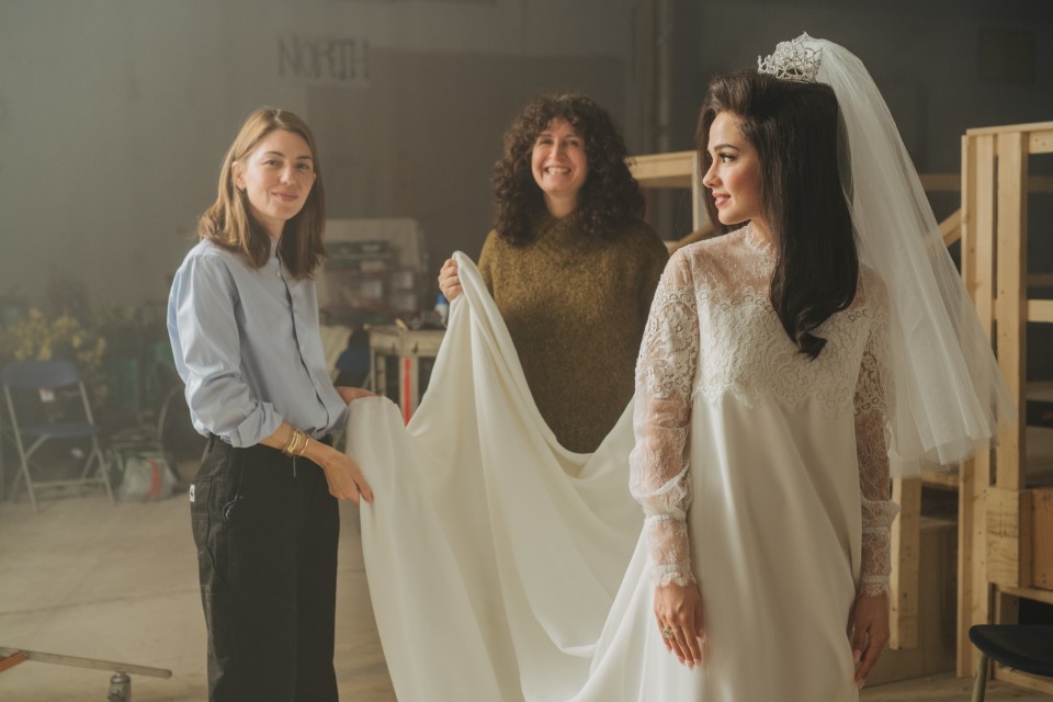 Каждая работа Софии Копполы — настоящая услада глаз для фанатов и профессионалов моды. Костюмы, а также прически и грим сыграли большую роль в погружении зрителя в ткань фильма. Стэйси Баттат, работавшая с Копполой со времен фильма «Где-то» 2010 года, создала костюмы, которые эволюционируют от скромных платьев 50-х годов до крутых мини-юбок 70-х. Будучи ревностным исследователем, Баттат погрузилась в богатые архивы Нью-Йоркской публичной библиотеки и музея Метрополитен, чтобы найти ткани, текстуры и оттенки, а также материалы той эпохи. А еще — привлекла к работе над костюмами главные модные дома: например, чтобы воссоздать свадебное платье Присциллы, Баттат обратилась к Chanel. «Наше свадебное платье в фильме — это переосмысление того, что носила Присцилла», — поделилась Баттат. — Оно той же формы, что и ее настоящее платье. Но в нем прослеживаются детали современного кружева Виржини Виар (креативный директор Chanel — прим. BURO.)».
