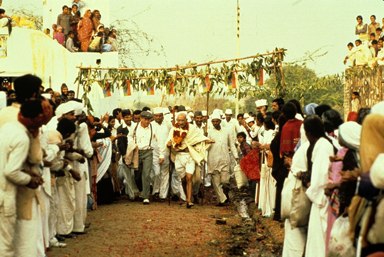 Эпичный трехчасовой байопик Махатмы Ганди с Беном Кингсли в главной роли открывается сценой его убийства и охватывает период с 1893 по 1948 год. Полвека ненасильственного сопротивления начинаются с первых шагов Ганди в борьбе за права индийского населения — еще в Южной Африке, где даже зажиточные индусы считались людьми второго, а то и третьего сорта. Немаловажное место в повествовании занимает и бойня в Амритсаре, и голодовки Ганди, и независимость Британской Индии с последующим разделением на Пакистан и Индийский союз. Еще одна печальная страница в истории британской колонии, приведшая к массовому переселению, разрушению семей и чуть ли не гражданской войне между индусами и мусульманами.