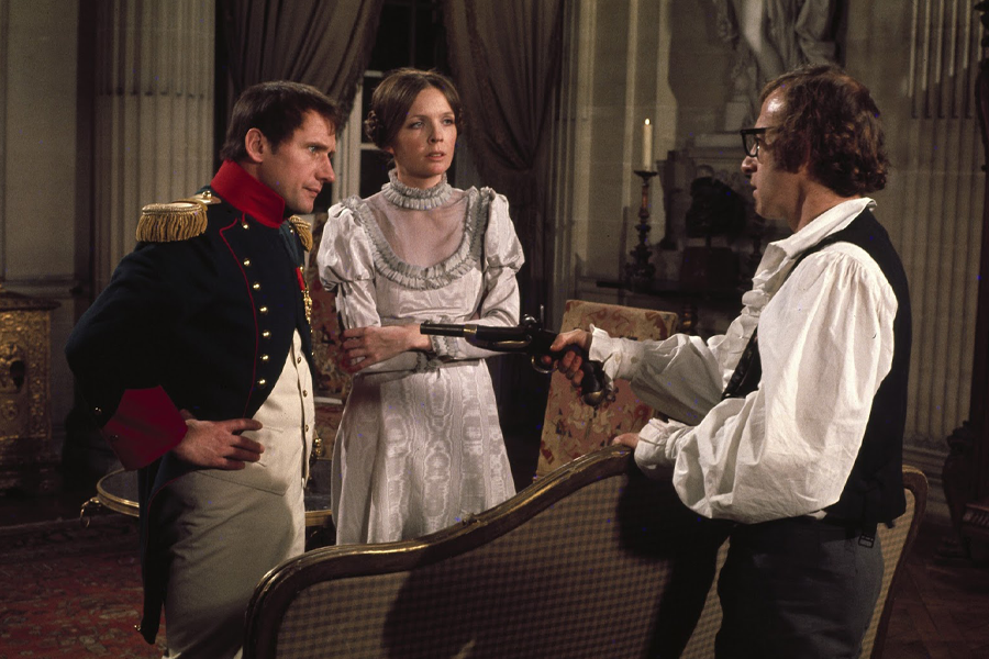 Достаточно нетипичный для Вуди Аллена сюжет. В центре истории — русский дворянин, который пытается избежать призыва на войну с Наполеоном. В ленте много отсылок к русским деятелям культуры. Например, в фильме звучит музыка Сергея Прокофьева, а сцена, где солдата подстреливают в глаз через очки, отсылает к картине Сергея Эйзенштейна «Броненосец "Потемкин"» (1925). В ролях: Вуди Аллен, Дайан Китон, Жорж Аде и другие.