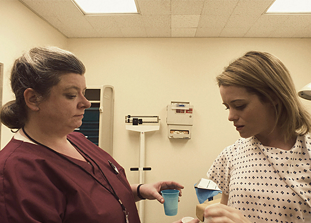 Петь дифирамбы одному Содербергу было бы неверно, потому что не менее важен относительно всего остального центральный персонаж фильма — Сойер Валентини, роль которой исполнила Клэр Фой, прославившейся после сериала «Корона». С самого начала по манере Сойер общаться с другими заметно, что она как будто бы постоянно взвинчена. Как пел Виктор Цой в песне «Мама, мы все сошли с ума», «разрежь мою грудь, посмотри мне внутрь, ты увидишь, там все горит огнем». Сталкинг — воплощение самых сильных страхов, которые могут появится у девушки, когда кто-то слишком настойчиво просит телефон и отпускает сальные комплименты, ведь невозможно предсказать, какие другой человек установил для себя границы в общении и на чем он остановится. Такое преследование оставляет психологическую травму, и в «Не в себе» она так тщательно и тонко разыграна, что вызывает внутренний дискомфорт и у зрителя. Попутно в фильме задета и проблема того, что женщинам, рассказывающим о домогательствах, часто не верят, считая это плодом воображения. Сойер борется за то, чтобы быть услышанной, но ее не хотят слушать.