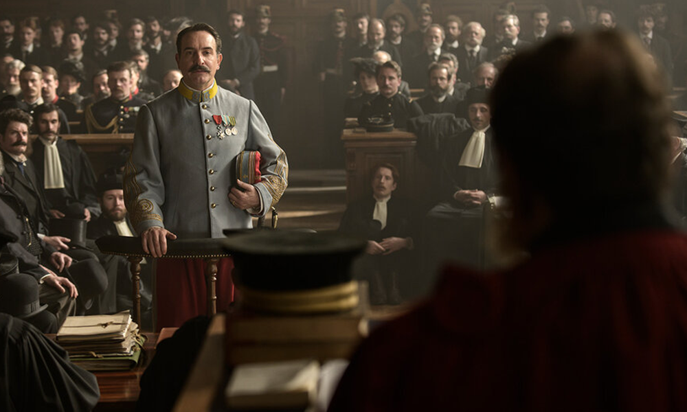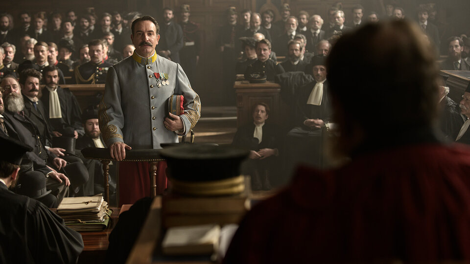 О деле Дрейфуса уже сняли с десяток фильмов и сериалов (и по меньшей мере два из них называются «Я обвиняю» (J’accuse) — так же, как фильм Поланского в оригинале). Альфред Дрейфус — французский капитан еврейского происхождения, которого на основе липовых улик арестовали, обвинили в предательстве и сослали. Его историю Полански преподносит с неожиданной точки зрения: ее рассказывает бывший начальник Дрейфуса, полковник Жорж Пикар (Жан Дюжарден), который потребовал пересмотреть его дело. И это интересный подход: Дрейфус — лицо страдательное и страдающее, которым распоряжается общество, Пикар — активное и действующее, и история Дрейфуса с его точки зрения превращается из чистой трагедии в фарс и детектив.